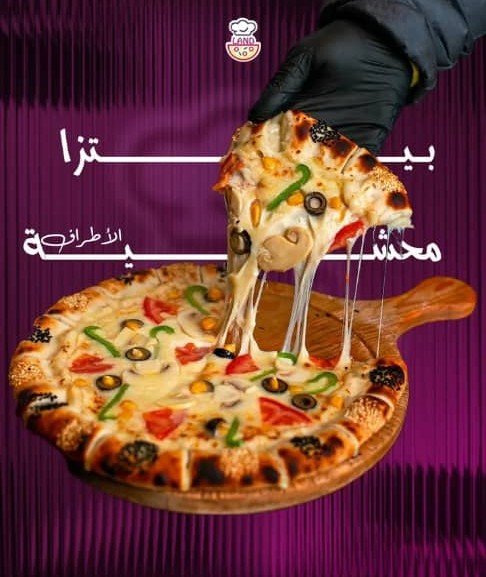 تتميز بيتزا لاند بتقديم مزيج من المكونات الطازجة بعناية فائقة. تتمثل هذه الإضافات باللمسة الشهية للزيتون، الفلفل الأخضر، الفطر، والطماطم الطازجة، والتي تضيف نكهة غنية ومزينة بكل التفاصيل. فوق كل ذلك، تُغطى البيتزا بطبقة سخية من جبن الموزاريلا الذائب لإثراء الطعم.