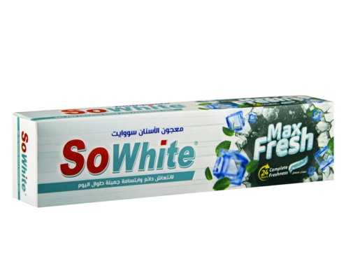 سو وايت ماكس فريش ليس مجرد معجون للأسنان، بل هو بوابتك لمظهر صحي وانتعاش يدوم. تمنحك تقنية الانتعاش الدائم بياضاً أكثر ورائحة منعشة تجعلك تشعر بالثقة أينما كنت. اختبر الفرق بنفسك مع ابتسامة جميلة تدوم طوال اليوم.